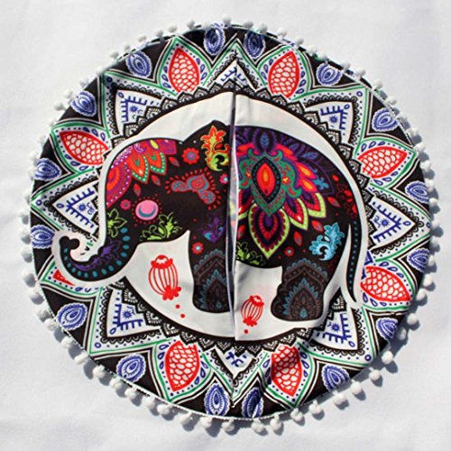 Kword Cuscini Caso, Indiano Mandala Rotondo Bohemien Casa Cuscino Cuscini Divano Elefante Stampa Nappa Cuscini Copertina (B)