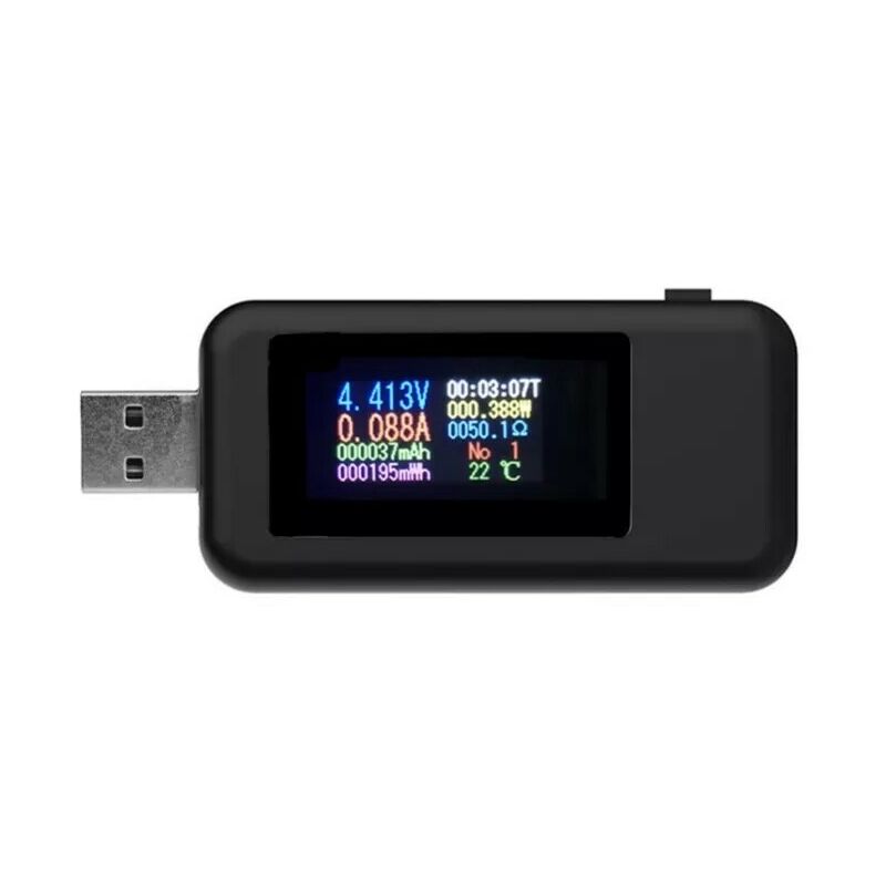 Istruzioni per l'uso: 1: fare clic sul pulsante per visualizzare 1-9 set di dati di ricarica. 2: premere a lungo il pulsante per 3 secondi per rimuovere una serie di dati di ricarica. 3: Fare doppio clic sul pulsante per ruotare lo schermo per visualizzare. 4. Premere a lungo il pulsante e inserire l'interfaccia USB per accedere alla calibrazione della tensione: Ad esempio: (1) Se il display (5.526V→ ) Quindi fare doppio clic rapidamente sul pulsante (2) Se il display è (5.528V↑), è possibile fare clic sul pulsante per aumentare la tensione del display. (3) Fare doppio clic pulsante rapidamente, se viene visualizzato (5,528 V↓), è possibile fare clic sul pulsante per ridurre la tensione del display. fai clic sul pulsante ancora una volta, lo schermo visualizzerà Calibrazione corrente! Il sistema esegue automaticamente la calibrazione corrente e tornerà automaticamente alla home page delle funzioni al termine della calibrazione. Specifiche: Materiale: ABS Colore: Bianco, Nero Corrente