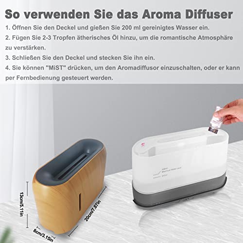 Materiale di alta qualità: diffusore realizzato in materiale ABS avanzato, non ha alcun odore particolare e offre un'esperienza di utilizzo perfetta. Il serbatoio dell'umidificatore freddo ha 200 ml, il volume massimo di iniezione dell'acqua è di 240 ml, il volume di nebulizzazione può essere di 30 ml/h e l'umidificazione può durare circa 7 ore. Defuser Air Aroma Sensore di livello dell'acqua, se non c'è acqua, la lampada profumata elettrica si spegne automaticamente, offre una maggiore protezione di sicurezza per l'uso.