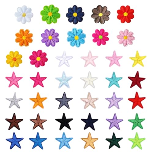 KXUSW 40 Toppe Termoadesive Ricamate,Toppe Termoadesive Bambini,Toppe Termoadesive,Toppe Termoadesive Margherita, Toppe Termoadesive Stella,per Accessori Fai da Te, Giacche, Cappelli, Zaini, Jeans