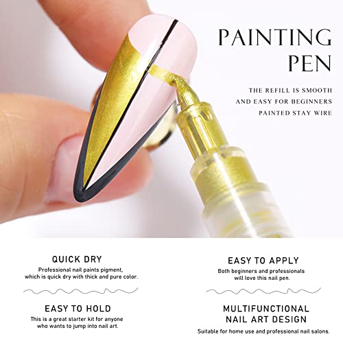 【 Motivo 】 La penna sottile, abbinata a un ricco inchiostro, soddisfa le esigenze dei diversi modelli di disegno e tecniche. I motivi come pois, linee, fiori, stelle, ecc. possono essere dipinti liberamente sulle unghie.