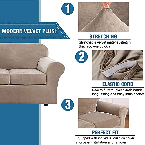 KYJSW Copridivano, Coprisedile Per Divano Elasticizzato In Velluto, Copriseduta Divano, Copridivano Con Fodera Per Cuscino Indipendente (Sabbia,Fodera per cuscino*1)