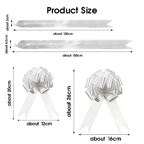Ampia applicazione: questo fiocchi auto matrimonio bianche la dimensione è (3 * 12 cm, 5 * 15 cm), l'arco è perfetto per corteo nuziale, fiocchi per feste, decorazioni nuziali, decorazioni natalizie, decorazioni per la tavola o decorazioni pasquali.
