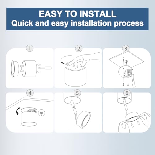 【Facile da installare】I Faretti LED da Soffitto non necessitano di trasformatore e si collegano alla morsettiera con un cavo da 230V. Le istruzioni di installazione sono incluse per facilitare l'installazione della plafoniera da soffitto.