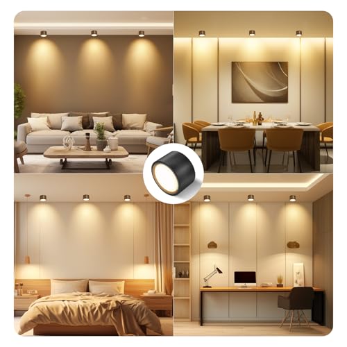【Materiali di qualità】I faretto soffitto sono realizzati in solido alluminio, non facilmente deformabile, non arrugginisce mai, di lunga durata. Faretti da soffitto nero opaco, non ci sono viti visibili sulla custodia, aspetto elegante.