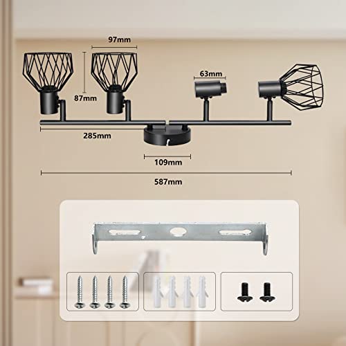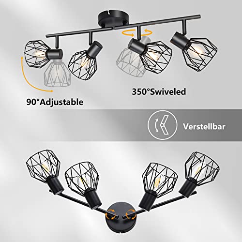 KYOTECH Faretti da soffitto orientabili a 4 luci lampada da soffitto Plafoniera LED Attacco E14,Per 4 lampadine E14 non incluse,Faretti Orientabili Parete Nero per Soggiorno e camera da letto