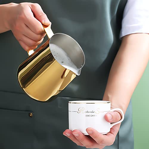 Kyraton Brocca Per Schiuma Di latte 21 once - 620 ml, Caraffe Per Caffè Espresso In Acciaio Inossidabile Con Penna Decorativa, Tazze Per Montalatte, Cappuccino, Brocche a Vapore (Oro)