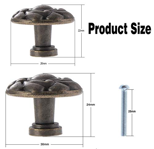 Kyrio - Pomelli rotondi in ottone per armadietti, stile vintage, per cassetti antichi, per mobili e armadi, in bronzo (S (22 x 26 mm)