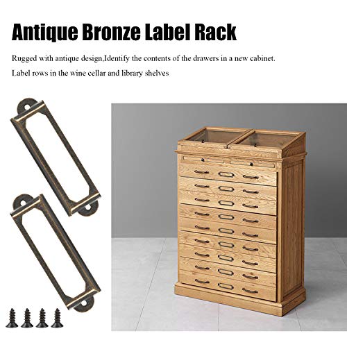 Porta etichetta in metallo color bronzo. Targhette in metallo robusto e resistente con un design antico. Per identificare il contenuto dei cassetti in un nuovo armadietto. Per etichettare le file in cantina e negli scaffali della biblioteca