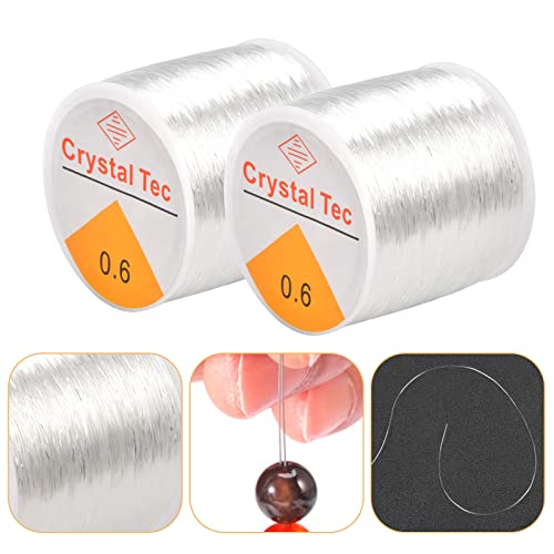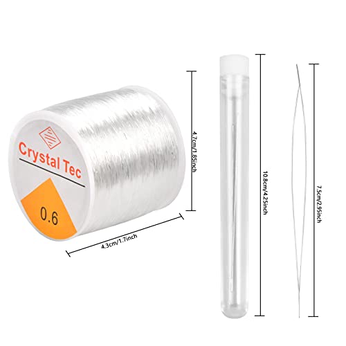 KYSUN 2 Pezzi 100m Filo Elastico Trasparente, Bobina di Filo Trasparente, Filo di Perline per Bracciali, Filo Elastico di Cristallo con 2 Aghi per Perline per Braccialetti Gioielli Collana, 0.6mm
