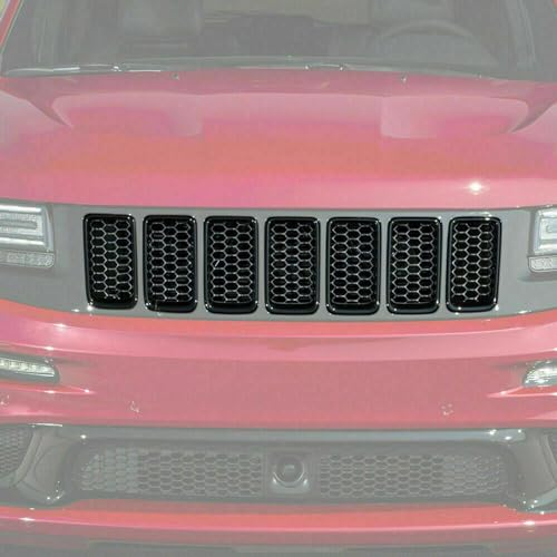 KYYET 7 Pz Anelli Paraurti Anteriori Griglia Inserto Trim Copertura Compatibile con Jeep Grand Cherokee 2014 2015 2016 Nero Lucido