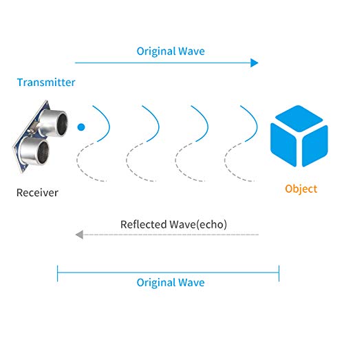 Principio di funzionamento: sensore di distanza ad ultrasuoni HC-SR04, composto da trasmettitore a ultrasuoni, ricevitore e circuito di controllo.