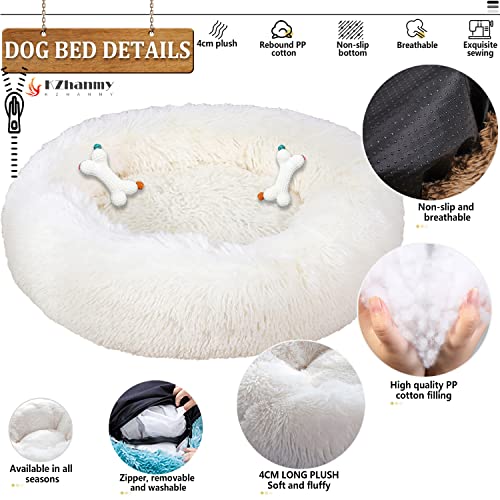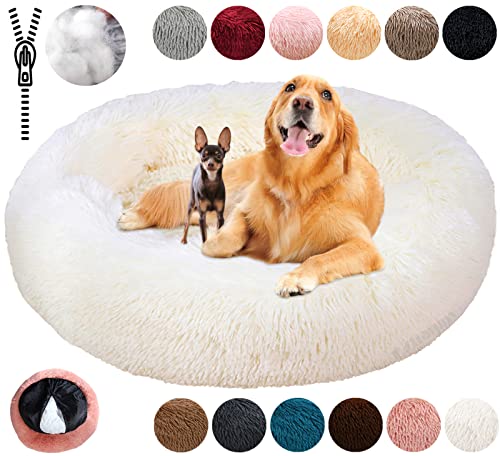 KZhanmy Cuccia per Cani,Letto Cani Cuscino Sfoderabile Pelosa Antistress,Cuccia Cane Interno Rotondo,Cuscino per Cani Grandi Morbida Peluche,Lavabile Antiscivolo,12 Colori-White||XL-80cm/31.4in