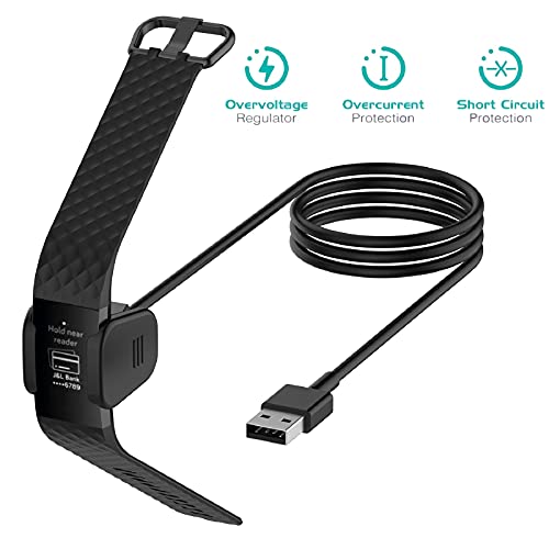 KZIOACSH Caricatore Compatibile con Fitbit Charge 3/Charge 4 Cavo,Sostituzione USB Cavo di Ricarica Caricabatteria per Fitbit Charge 3/Charge 4,Nero