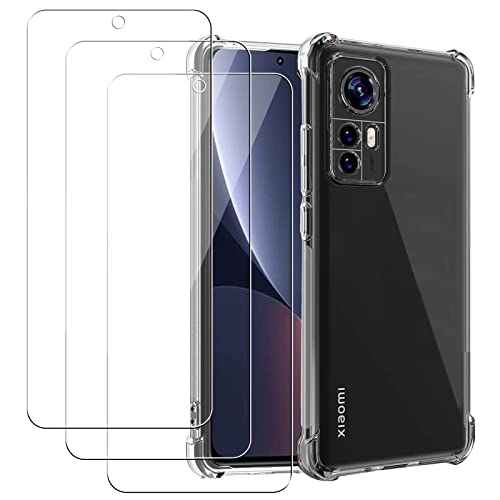 KZIOACSH Cover per Xiaomi 12 Lite + [3 Pack] Vetro Temperato,Ultra Sottile,Antiurto,AntiGraffio Morbida TPU Silicone Custodia,Trasparente