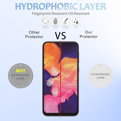 [Design di precisione]: protezione dello schermo in vetro temperato appositamente progettata per Samsung Galaxy A10, taglio laser di precisione per la fotocamera anteriore e l'altoparlante. Specificamente progettato per coprire lo schermo, è una scelta eccellente per la protezione dello schermo e grazie alla tecnologia precisa, la protezione dello schermo aderisce saldamente allo schermo.