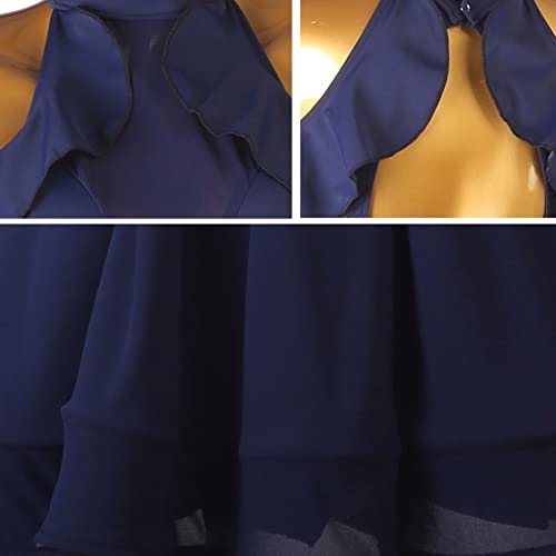 Kzytamz Abito da Ballo Standard Nazionale Abiti da Ballo Abito Estivo A Collo Alto con Maniche Lunghe Abito da Valzer Moderno da Donna Flamenco Dress Vestito di Performance (M,Blue)