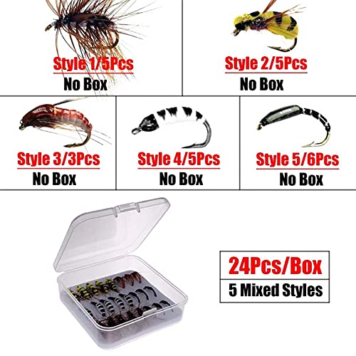 L-MEIQUN, 3-24 pz Ninfe Ceca Scud Bug Worm Bugs Worm con Gancio spinato Trota Pesca Fly Lire Esca (Colore: Style1 5Pcs)