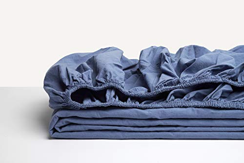 L1NK STUDIO Lenzuolo con Angoli Singolo Cotone Tinta Unita per Letti 90 cm (90x200x35cm) 100% Cotone (Percalle 200 Fili) Blueberry