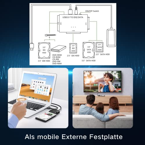 Con questo convertitore USB 3.0 / SATA / IDE, è possibile collegare dischi rigidi IDE / SATA da 2,5" al computer tramite una porta USB.