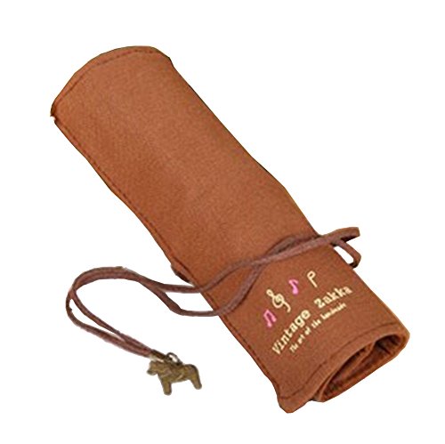 Laat Roll Up Canvas sacchetto della matita su tela sacchetti di immagazzinaggio Rollen cosmetici Spazzole di vibrazione Astuccio Cancelleria Custodia con Retro Ciondolo in metallo 25x20CM Beige