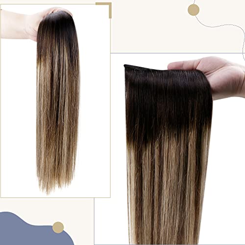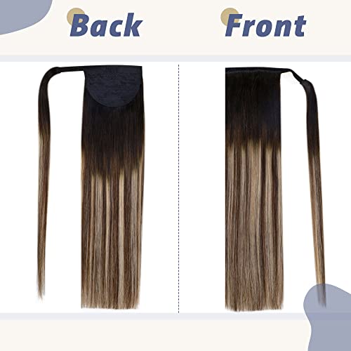 LaaVoo Un Pezzo Code Capelli Veri Lisci 14 Pollice/35cm 70g Ponytail Clip in Extensions Natural Hair Da Ombre Nere a Castano Scuro Con Biondo Fragola #1b/4/27