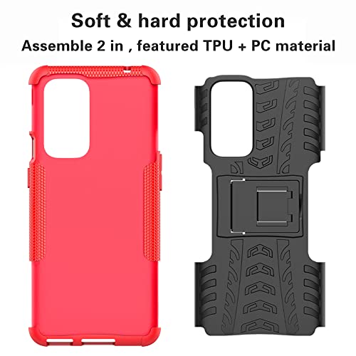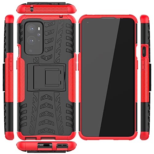Labanem Cover con OnePlus 9 PRO, Kickstand Dual Layer Ibrida Rigida Morbido Armatura Resistente agli Urti con Supporto e asportabile di Protezione per OnePlus 9 PRO - Rosso