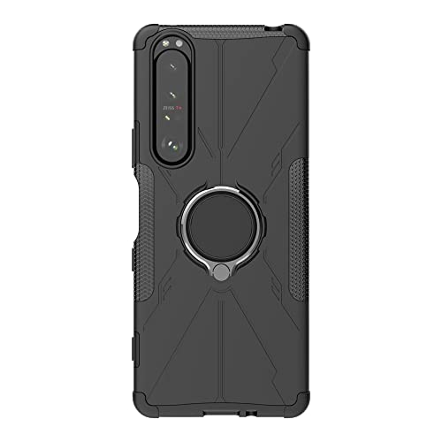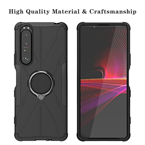 Labanem Custodia per Sony Xperia 1 III, Cavalletto con Anello in Metallo,360°Rotazione Protettiva in TPU & PC Morbida, Compatibile con Supporto Magnetico per Auto - Nero
