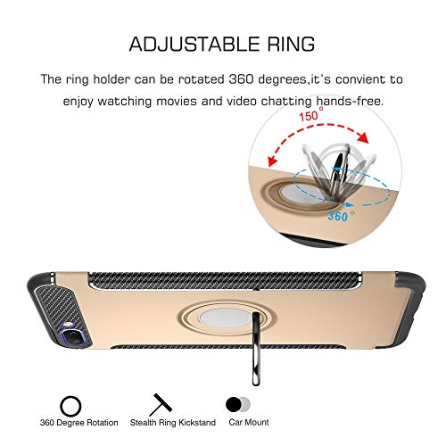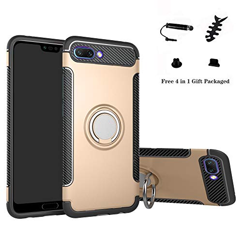 Labanema Custodia per Huawei Honor 10, Cavalletto con Anello in Metallo,360°Rotazione Protettiva in TPU & PC Morbida, Compatibile con Supporto Magnetico per Auto - Oro
