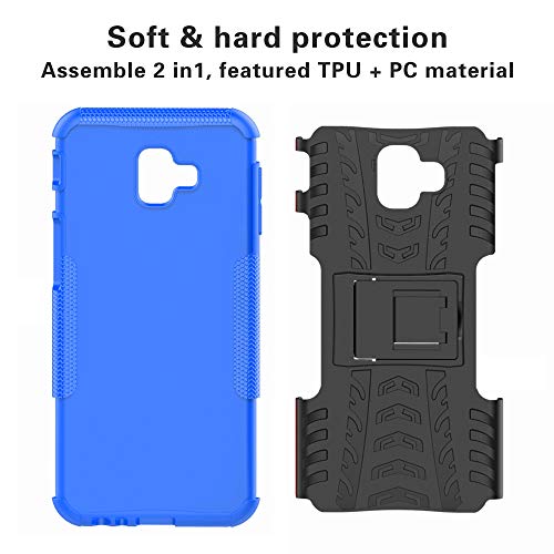 Labanema Kickstand Dual Layer Ibrida Rigida Morbido Armatura Resistente agli Urti con Supporto e asportabile di Protezione Custodia per Samsung Galaxy J6 Plus / J6 Prime / J4 Plus / J4 Prime - Blu