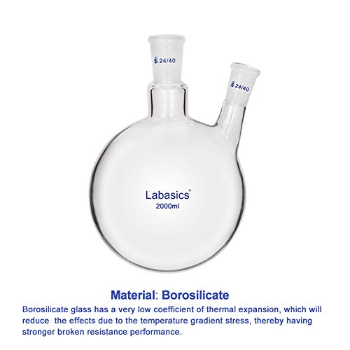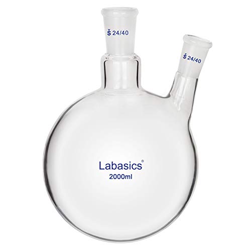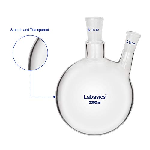 Labasics 2000ml RBF Pallone Vetro Laboratorio a 2 Angolato Colli, 2 Neck Round Bottom Flask con Giunto Esterno Conico Standard 24/40 (2000ml)