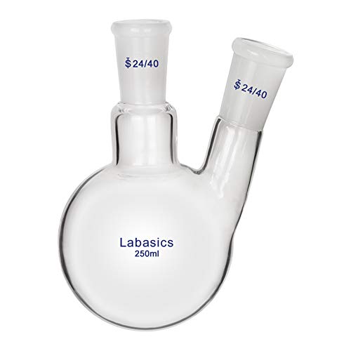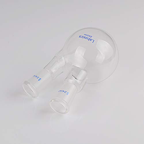 Labasics 250ml RBF Pallone Vetro Laboratorio a 2 Angolato Colli, 2 Neck Round Bottom Flask con Giunto Esterno Conico Standard 24/40-250ml