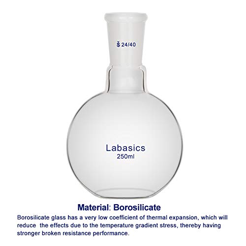 Labasics 250ml Vetro Pallone Laboratorio a Fondo Piatto a Collo Singolo, Single Neck Flat Bottom Boiling Flask Matraccio da laboratorio con Giunto Esterno Conico Standard 24/40-250ml