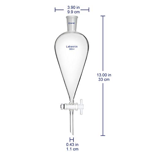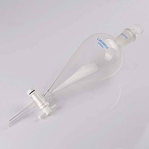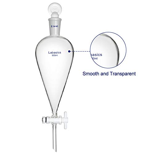 Labasics 500ml Imbuto Separatore Conico in Vetro Borosilicato con Rubinetto di Arresto in PTFE, Separatory Funnel Imbuto da Laboratorio - 500ml