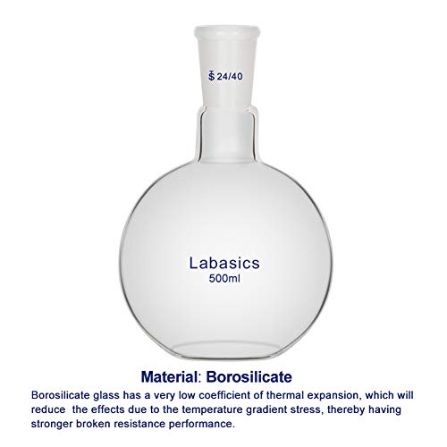 Labasics 500ml Vetro Pallone Laboratorio a Fondo Piatto a Collo Singolo, Single Neck Flat Bottom Boiling Flask Matraccio da laboratorio con Giunto Esterno Conico Standard 24/40-500ml