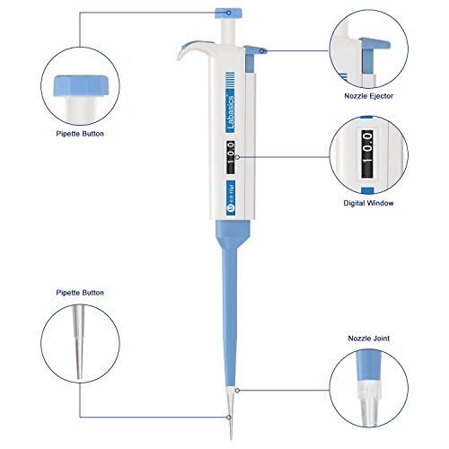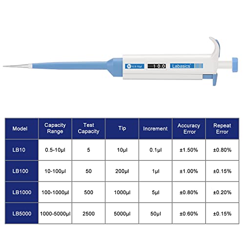 Labasics Pipette monocanale, Pipettatore a Canale Singolo Micropipetta a Volume Variabile Regolabile Manuale Pipetta con Puntale Sostituibile, 0,5-10 µL