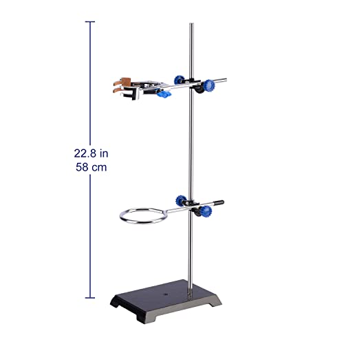 Labasics Set di Stativi e Morsetti da Laboratorio, Supporto per Stativi da Laboratorio con Asta (Lunghezza 56,9 cm), Morsetto per Burette a 4 Punte, Anello per Storta e 2 Teste di Boss