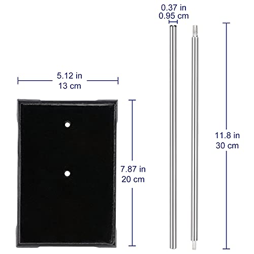 Questo set include una base di supporto da 200 mm x 135 mm e un'asta da 570 mm