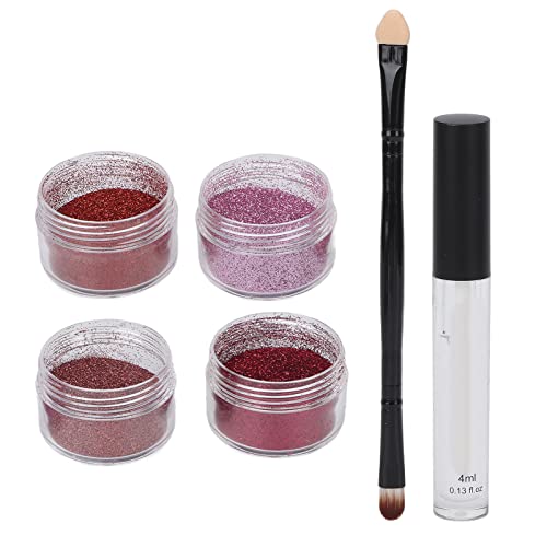 Kit per Labbra Glitterate a 4 Colori, 4 Pezzi da 0,4 Once Polvere per Labbra Glitterata Polvere per Labbra Lucida Impermeabile 4 Ml Set di Pennelli per Primer per Labbra Cosmetici, Rossetto Metallico