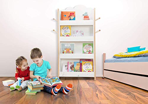 ADDATO BENE CON TUTTE LE DIMENSIONI - La libreria ha 3 ripiani e con profondità diverse, può contenere fondamentalmente qualsiasi dimensione del libro. I libri sono in avanti affinché così i lettori giovani e pre-lettori possono facilmente riconoscere la copertina della loro storia preferita. Il designo a display aperto invita i piccoli a studiare proprio a loro livello e scoprire nuovi libri accanto ai loro preferiti.