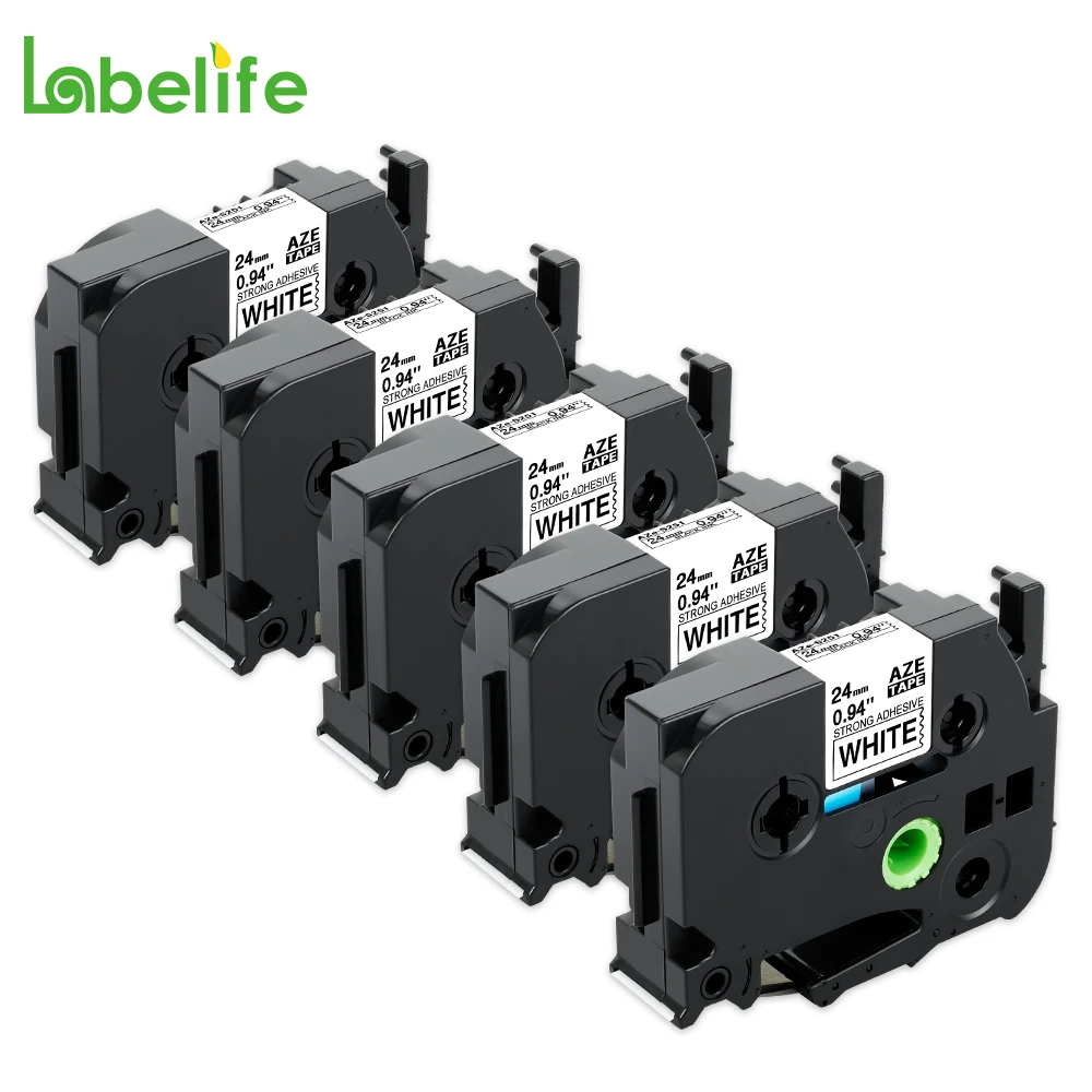 Labelife 5 Pack 24mm TZe-S251 Strong Adhesive Tape Black on White for Brother P-touch Tape TZ-S251 Extra Strength Tape