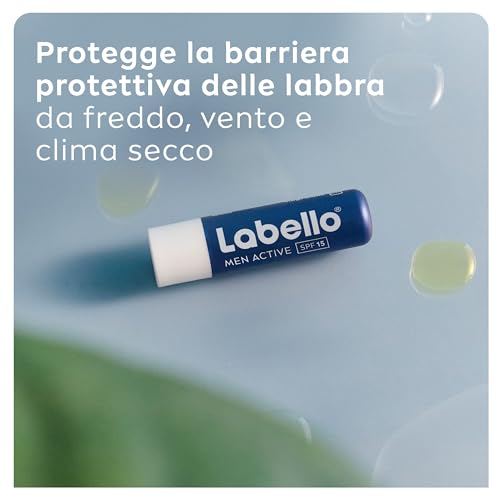 Labello Active For Men 4.8 g, Burrocacao labbra SPF15, Balsamo labbra idratante con burro di karité e oli naturali, Burrocacao protezione solare fondente sulle labbra