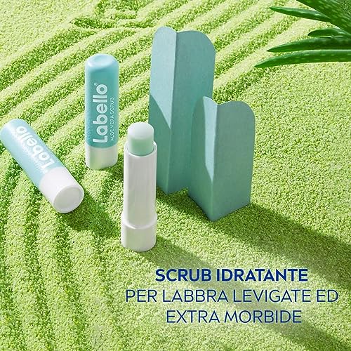 Labello Scrub Idratante Aloe Vera 5.50 ml, Scrub Labbra con particelle esfolianti, aloe vera bio e vitamina E, Scrub labbra esfoliante senza oli minerali e microplastiche