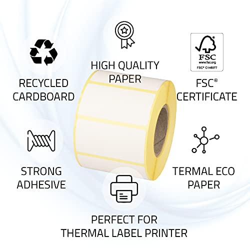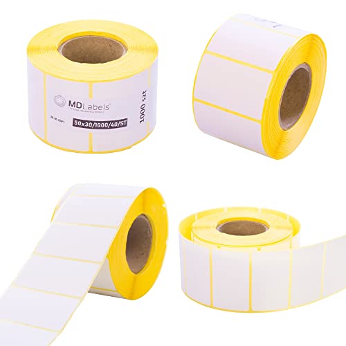 MD Labels Etichette termiche bianche su rotolo - 50 x 30 mm - 1000 pezzi - manica 40 mm - permanenti - per codici a barre - Etichette adesive bianche per scrivere - Etichette termiche