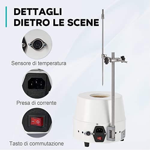 LABFISH Mantello Riscaldante Laboratorio 1000ml Agitatore magnetico, Riscaldatore termostatico con sonda di controllo della temperatura, funzione di temporizzazione con display digitale, 350W