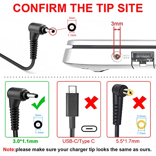 LabTEC Alimentatore di rete per computer portatile Acer Swift 1 3 5 Acer Chromebook CB3 CB5 11 13 14 15 R11 N16P1 A13-045N2A N15Q9 C738T N15Q8 CB3-532 CB3-431 PA-1450-26 spin 1 3 5 (3,0 x 1,1 mm)