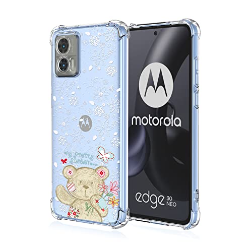 LACAE Trasparente Adorabile Cover per Motorola Edge 30 Neo, Morbida e Chiara Custodia TPU Colorato, Elegante Custodie Dall'aspetto Gradevole con Orso Decorati