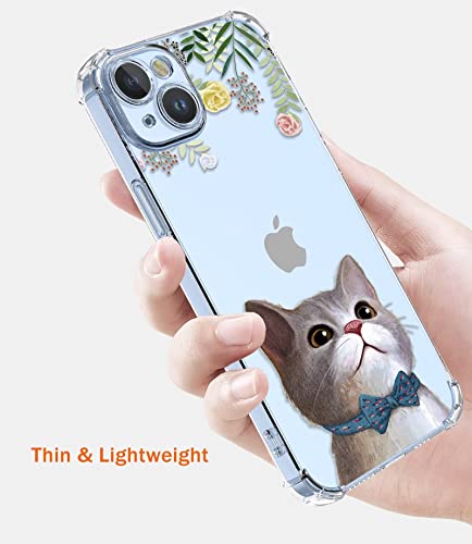 LACAE Trasparente Adorabile Cover per Samsung Galaxy M13 4G, Morbida e Chiara Custodia TPU Colorato, Elegante Custodie Dall'aspetto Gradevole con Gatto Decorati