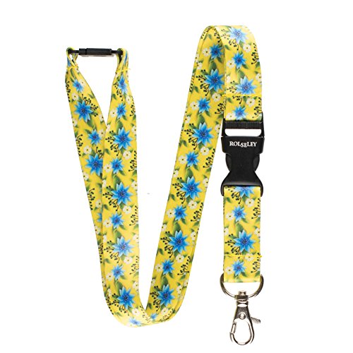 Laccio colorato per chiavi da appendere, dotato di chiusura di sicurezza e gancio a moschettone orientabile Gelbe mit Blumen
