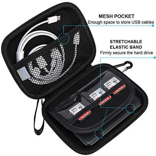 【 Memoria di grande capacità 】Questa borsa per disco rigido contiene tasche in rete aggiuntive, che possono essere utilizzate per conservare e conservare cavi dati USB, unità flash USB, cavi di ricarica e altri oggetti che devono essere portati con sé. C'è una piccola tasca sicura nella scatola, puoi riporre la scheda SD che devi portare con te.